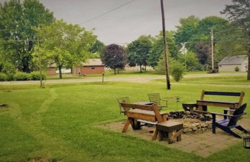 The property boasts a large yard for activities, a fire pit, & horseshoe game.