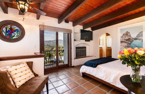 This 1 bedroom guesthouse (+ 1 sofa bed) sits atop of a ridge looking down on the rolling hills of avocado and lemon orchards. Enjoy a jacuzzi at sunset, or a day of floating in the pool under the palm trees. Or perhaps a walk through the orchard? There is a private gas grill aside the pool. Dogs welcome! Amenities are 10 minutes away in Camarillo.