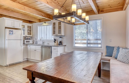 Boasting all of the classic touches of a Tahoe cabin in the woods, yet filled with all of the modern comforts of home, this adorable retreat will be the perfect jumping-off point for year-round adventures! If the blue waters of the lake are what you are after, you will be in paradise with the partial lake views that can be seen from the furnished back deck where you can easily stop a cup of coffee or cook up some burgers each night on the gas grill. Any downtime spent inside will be a treat too, as you can easily whip up tasty meals in the fully equipped kitchen as the rest of the gang cozies up in the living room by the wood-burning fireplace. Plus, with two bedrooms on each floor of the home, everyone can spread out and find their own piece of paradise.