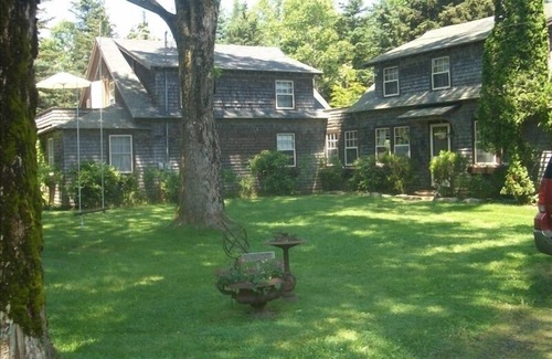 Located in Southwest Harbor, with a private right of way to the shore, this well known summer home sits on 2 acres of lawns and meadows. A typical shingled summer Maine cottage built in 1930, this home was the inspiration for the children's book, Fudgemania written by Judy Blume, and you will recognize many features of the house in the book. Warm and inviting, with exposed pine beams, pine floors, and a massive stone fireplace, this home always creates wonderful summer memories for those who are lucky to be able to spend time in it. Whether it's croquet games on the lawn, swings on the bigwooden swing hung between two of the large oak trees which anchor the front yard, walks to the shore via a private short path, bar-b-cuing in the back yard, having a lobster bake at the water's edge, or biking and hiking on the many trails of Acadia, this warm and inviting home has long been the favorite of many summer guests.The layout of the house creates spacious comfort as well as privacy for its guests. Its five bedrooms and three bathrooms, two living rooms, intimate dining room, and picture perfect setting make it a very special spot to spend your Maine summer holiday.