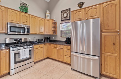 Enjoy our modern, open concept 3 bdrm/ 2 bath hm in an upscale gated community in Pinetop-Lakeside with hot tub. This is a lake community with private access to Rainbow Lake(about a 5 minute walk) Kitchen has newer appliances, gas stove, granite countertops. Family room has wood floors leather furniture, 60’ flat screen, with surround sound and Samsung Blue Tooth Music Soundbar. Master bdrm has 50’ flat screen and comfy king size bed. Kids room is a full over full bunk bed with trundle. Also, 50’ flat screen in kids room. Master bath is huge with walk-in shower and heated towel bar. Garage is available to secure equipment and toys and guests have access to use of toys in the garage(kayak, canoe, bikes, etc). Spacious backyard with natural gas grill and back porch for additional relaxation.
