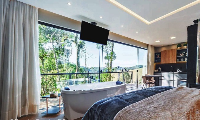 Situated in the mountains, this welcoming cabin brings all of Rancho Queimado within your reach. Jump into your car and make short work of the 9-minute drive to Leonardo Sell Square or the 30-minute drive to Serra do Tabuleiro State Park (and enjoy the property's convenient onsite parking in the meantime).