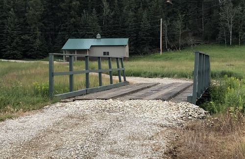 The cabin sets on 20 acres and has a beautiful view of Rapid Creek and the meadow surrounding it. It is tucked up on the hillside for privacy. It is a two story cabin with 2 bedrooms with queen beds and a loft with 2 twin beds. The couches on the upstairs and main floors are both pull out sleeper sofas.