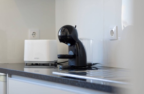 Welcome to the Red Velvet Flat – a contemporary escape with a striking red and neutral color palette that sets the tone for a memorable stay. The spacious living area invites you to relax on the plush sectional sofa, ideal for unwinding after a day of exploring the Algarve. The adjoining dining area, with chic barstool seating, connects seamlessly to a fully-equipped kitchen, ready for you to prepare anything from a quick breakfast to a cozy dinner.