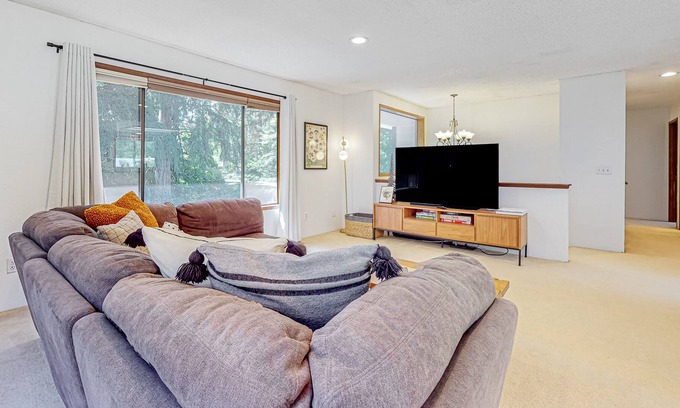 Relax at this inviting Redmond retreat! String lights, an assortment of lounge chairs, and a bistro table set the stage for all-day leisure on the private patio. The home itself is fully furnished for standalone living, making it a great choice for a family getaway. Redmond Ridge Golf Club and the Redmond Watershed Preserve are both within a five-mile radius. Carnation Farm and Marymoor Park, which features an RC plane airfield, a dog park, and access to Lake Sammamish, are both within a 10-mile radius. The Bellevue Botanical Garden is less than 12 miles away and the Cougar Mountain Zoo is 14 miles away. Wine enthusiasts will love being within 20 miles of numerous establishments in both Woodinville and Seattle.
