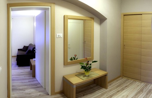 Each room has a contemporary design with light wood furniture that creates a warm atmosphere. The apartment, located on the ground floor, has a comfortable living room with TV and a kitchenette with oven, microwave, "coffee maker" and refrigerator, a double bedroom and a bathroom with shower. The double sofa bed in the living room can accommodate two people. APARTMENTS REGINA offers covered parking,storage for skis and boots, free internet connection.