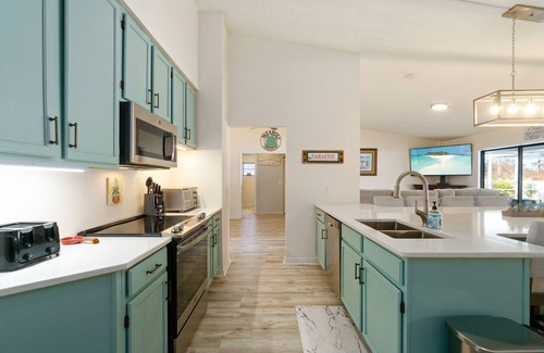 Amazing heated pool home near the beach! Bring the whole family to this relaxing oasis for an unforgettable vacation. Huge quartz island in updated kitchen with room for 10! Lots of beds, oversized screened-in beautiful lanai living space with pool, grill, couches, outdoor dining and big TV. You won't want to leave the lanai, but you will also be just a few miles to the nearest beach. Access to so many great Gulf beaches! We can't wait to host you!