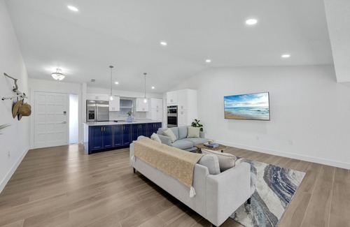 Upon entering the home, guests will find themselves immediately at ease as they are greeted by a bright and airy spacious living area featuring a large seating area and modern kitchen. The kitchen is fully equipped with everything you need to prepare delicious meals and features modern cabinetry and appliances as well as ample counter and cabinet space, ideal for a long-term stays. In terms of the floor plan, each of the 3 bedrooms offers plush bedding, smart TVs, comfortable furnishings, and plenty of space to unwind. The master bedroom features a King bed with an en-suite bathroom with walk-in shower. The other 2 guest bedrooms each feature a Queen bed, one with an en-suite bathroom and the other one with access to a bathroom down the hall. The 3 bathrooms are fully renovated, stylish and well appointed for maximum convenience. The highlight of this home is the large outdoor patio and dining area overlooking the serene Sanibel River, perfect for morning coffee, sunset drinks or alfresco dining. Whether you're unwinding and soaking in the Florida sun, biking to the beach or Ding Darling, or simply relaxing on the patio with your drink of choice in hand, this peaceful retreat offers the ultimate Sanibel Island experience. Book your stay today and enjoy a slice of island paradise!