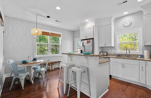 At Beach Happy you'll enjoy a spotless, family-friendly home with lots of outdoor living space and a brand new hot tub for 2023. 3br/2ba home has an open floor plan, a cozy cottage-inspired style and a fully-equipped kitchen and grill ready for entertaining. A short 15 minute walk to the beach via the 20th Street scenic walkway, or drive 3 minutes and take advantage of ample public beach parking.