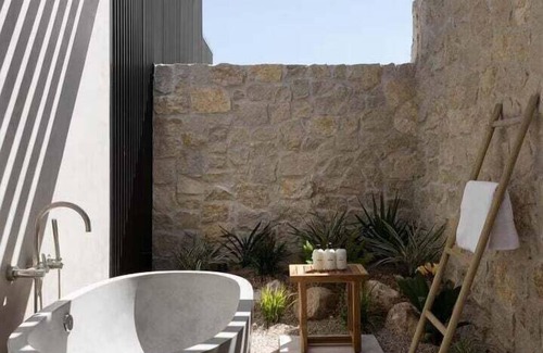 Outdoor shower and soaking tub
