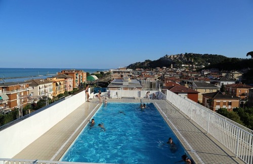 Also, on the fifth floor, here is the beautiful swimming pool, 11 x 5 meters wide, with the solarium and a magnificent view of the sea and the ancient village of Cupra Marittima.