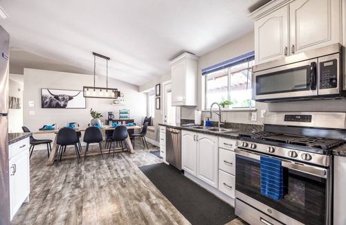 Your comfort is our priority. The home includes central AC and heating, a washer and dryer for your use, and seamless self check-in.