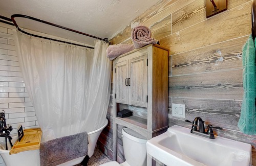 Featuring beautiful wood finishes, ample natural lighting, and carefully curated furnishings, the interior of the home invites you in and asks you to sit down and stay a while. Look out the telescope and discover views of mountain peaks and wildlife. Warm up around the wood stove with a home-cooked meal, prepared in the well-equipped kitchen. And take some time for yourself while unwinding in the claw foot tub.
