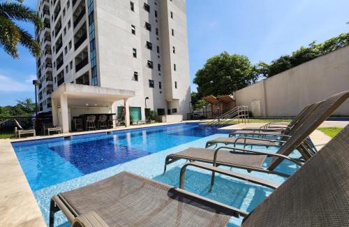 Yes, this Jacarepagua apartment has a swimming pool. Check the Facility Overview section for details about the pool and other available facilities.