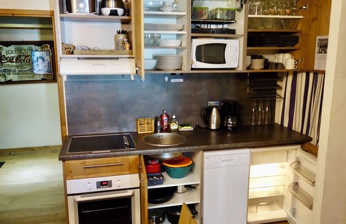- Fully equipped kitchen: a dishwasher, a microwave oven, a traditional oven, a filter coffee maker, a kettle, a raclette/pierrade and fondue maker, a toaster, a blender and a press citrus. But also a lot of dishes: plates, glasses, cutlery, pots, pans...