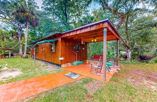 Riverfront bunkhouse with private W/D, grill, & canoe is located in Bronson. Riverfront bunkhouse with private W/D, grill, & canoe provides accommodation, featuring Air Conditioner, TV, Balcony/Terrace, among other amenities. This Cabin features Air Conditioner, TV, Balcony/Terrace, to make your stay a comfortable one.