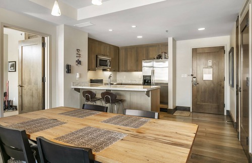 This platinum rated condo features wood floors, an open floor plan with mountain views from the spacious living room and the 2 bedrooms, gas fireplace, 2 comfy sofas (one with a pull out bed), and a dining area which seats 6 people, LCD flat screen TV, and WiFi.