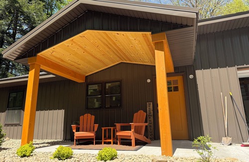 Step outside and soak in the natural beauty. Lounge on the shady decks or covered porch overlooking the river, fire up the gas grill, and gather around bar-top tables or Adirondack chairs. Down by the riverbank, a large deck offers the perfect spot for fishing, launching kayaks, or simply unwinding with a good book. As the sun sets, gather around the firepit for s’mores, stories, and stargazing.