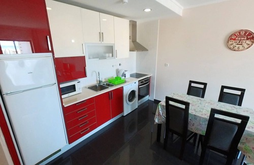 Fully equipped kitchen, living room with sofa bed for two people, bedroom with double bed, small room with sofa bed for two people, bathroom with shower base with shower, washbasin for 2 persons, toilet and bidet. The apartment is on the 13th floor with a view of the sea.