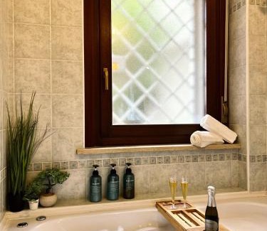 Rome & Giulietta apartment offers accommodations in Rome, 4.1 miles from Rebibbia Metro Station and 4.7 miles from Bologna Metro Station. With garden views, this accommodation features a terrace. The accommodation offers a hot tub, free Wifi throughout the property, and private check-in and check-out. The air-conditioned apartment consists of 1 bedroom, a living room, a fully equipped kitchenette with an oven and a coffee machine, and 1 bathroom with a hot tub and a hair dryer. Towels and bed linen are featured in the apartment. The property has an outdoor dining area. Guests can also relax in the garden. Tiburtina Metro Station is 5.1 miles from the apartment, while Roma Tiburtina Train Station is 5.1 miles away. Rome Ciampino Airport is 16 miles from the property.