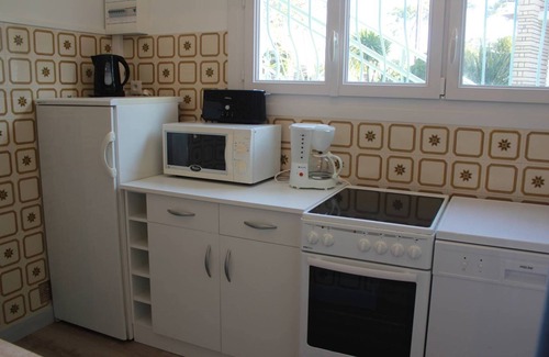 This pleasant flat of about 44m² is composed of a living room with flat screen TV and a convertible sofa bed, an open kitchen equipped with a 4 hotplates cooker and electric oven, a microwave, a fridge with a freezer, a washing machine and a dishwasher.
