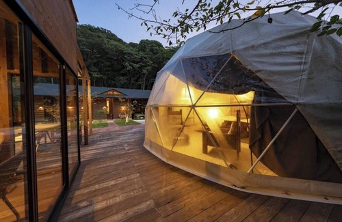 Located 20 minutes south by car from Sumoto City in the center of Awaji Island the private glamping facility Yura Green is surrounded by nature within the Seto Inland Sea National Park