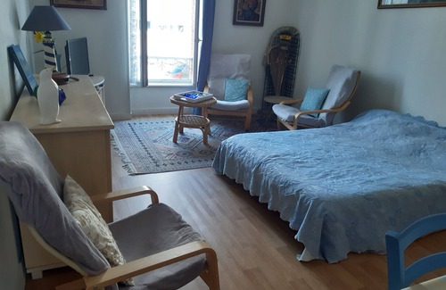 Ideally placed 300 from the port, the beach, thalasso APARTMENT 2/4 people, ground floor garden with a small room with 1 bed 140, a kitchen (electric stove, coffee maker, microwave) ) a large living room (with sofa-bed 140), rattan lounge, TV, internet, bathroom (shower, wc, washbasin)