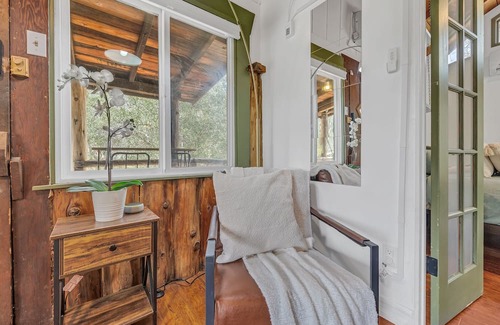 Welcome to the Gold Mine Cabin, a log cabin built in 1928 that was carefully preserved. Have you ever wanted to stay in a rustic cabin but also feel glam and lux? Look no further. Butcher block kitchen counter with a farm house sink, vaulted ceilings throughout, luxury mattress, pull out queen bed couch, 70" projector screen, AC & Heat mini splits, and a shower big enough for a party. If you're looking to slow things down and enjoy everything historic Julian has to offer, you found the place.