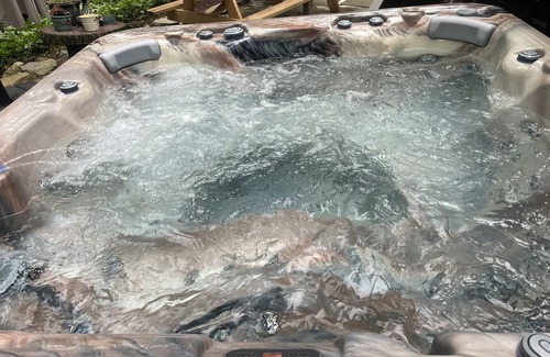 You can enjoy the hot tub anytime of day—and it's open year round. A towel warmer inside the back porch, just steps from the new 6-person hot tub, is available for your comfort.