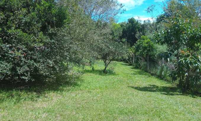 Comfortable house with 2 bedrooms, kitchen, bathroom and fireplace, in a very airy and bright place. Located in Porto Alegre in one of the neighborhoods of the itinerary of rural paths, close to Granja Lia. It has large courtyard with fruit trees, completely fenced. Bring your pet to play here! Has area with barbecue and plenty of shade.