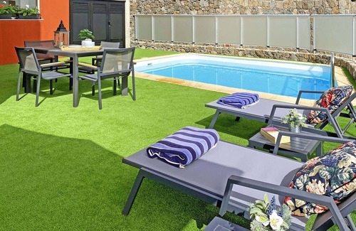 Modern and bright villa, fully equipped, perfect for enjoying the good weather in the south of Gran Canaria in a unique setting.The complex is accessed through a barrier, to open this barrier we provide you with a command. Keep in mind that each house has only one parking space, so if you come with several cars you will have to turn them off outside. To get to the entrance of the property you must go up some stairs.The villa in San Bartolomé de Tirajana has 3 bedrooms.The villa is 110 m².The accommodation is equipped with the following items: garden, garden furniture, fenced garden, iron, safe, internet (Wi-Fi), hair dryer, private swimming pool, open-air parking, 2 TVs, tv satellite (Languages: Spanish, English, German).In the induction open plan kitchen, refrigerator, microwave, oven, freezer, washing machine, dryer, dishwasher, dishes/cutlery, kitchen utensils, coffee machine, toaster, kettle and juicer are provided.