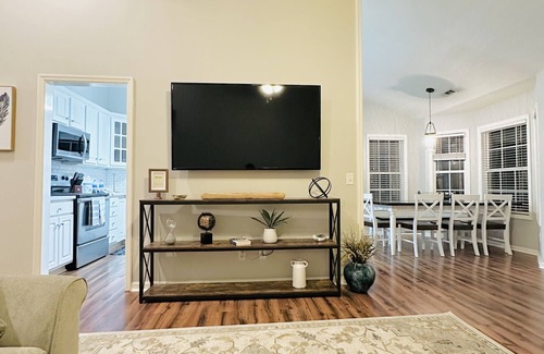 Your upcoming stay in Lady's Island is sure to be a delightful experience. The property features a private and secure entry with a smart keypad lock, and a 4-car driveway for your convenience. The tastefully furnished living room with high vaulted ceilings creates an inviting and open atmosphere, perfect for your relaxation. Additionally, a serene pond located across the street provides a picturesque setting for morning and evening walks, making this property the ideal recipe for rest and relaxation.