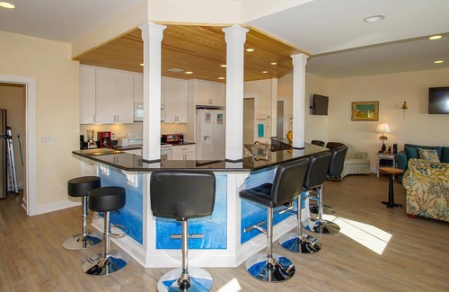Enjoy the convenience of having three refrigerators in which to stock up for your stay along with an extra ice maker. There are various decks and covered porches from which you'll enjoy taking in the views, watching the coastal wildlife, dining, entertaining and gazing up at the stars. An extra large charcoal grill is available for your use alongside the pool deck, and an outdoor hot/cold shower is available to wash the sand away at the end of the day. Stay connected and entertained with 11 flat screen tv's, high speed WiFi and cable. With all it's features, this island home is just the retreat you and your guests have been looking for on the peaceful West End of Holden Beach.