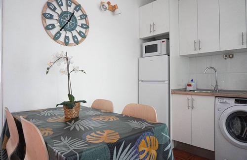 The apartment in Alajeró has 1 bedroom(s) and capacity for 4 people.Comfortable and fully equipped 64 m² accommodation, with views of the pool.It is located 0 m from the city "Playa de Santiago", 300 m from the restaurant "Tasca Enyesque", 400 m from the supermarket "Spar Playa Santiago", 450 m from the sand beach "Playa de Santiago", 3 km from the airport "Aeropuerto La Gomera", 19 km from the natural park "Parque Nacional de Garajonay" and is located in a residential area and in the residential complex.It has garden furniture, washing machine, internet access (Wi-Fi), dryer, balcony, community pool, 1 fan, 1 TV.The open-plan kitchen, with ceramic hob, is equipped with a refrigerator, microwave, freezer, dishes/cutlery, kitchen utensils, coffee maker, toaster, kettle, juicer and stove.