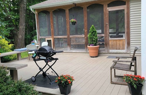 Discover this serene, spacious retreat in Saratoga Springs in an upscale cul-de-sac location. This stylish house offers 1 king bed, 1 queen bed, and 2 full beds, perfect for a group getaway. Dedicated workspace makes it asy to mix work with pleasure. The private, fenced backyard with gorgeous heated, inground pool, features, lounge chairs, outdoor sofa and screened in dining space for summer outdoor fun. Enjoy amenities like WiFi, AC, first floor washer/dryer and a fully equipped kitchen. Whether you are here for horse racing, SPAC, hiking a quiet retreat, this property offers the best of both worlds, peaceful relaxation, 5 miutes for the excitement of downtown Saratoga Springs.