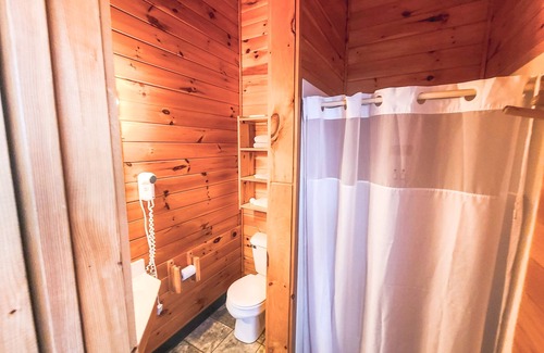 This is our beautiful Scarlet Oak Cabin. It houses three bedrooms each with their own en suite bathroom. This cabin is perfect for large families or groups! From Willow Oak you've got a beautiful view of the pool and the Chippewa Flowage. It comes fully equipped with solid top electric range, refrigerator/freezer, microwave, coffeemaker, toaster, all cookware, utensils and dishes, kitchen linens, Flat screen HD TV's, with 100+ channels Dish Network TV, gas fireplaces, gas heat, central air, decks with patio furniture & hooded grills. Scarlet Oak Cabin rates are set for 6 people with a maximum occupancy of 9 people.