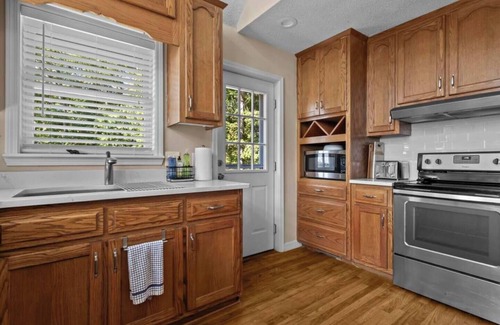 Fully equipped with everything you need to cook your favorite meals, including a fridge, stove, oven, microwave, and a drip coffee maker. BBQ utensils for grilling and a toaster are also provided.