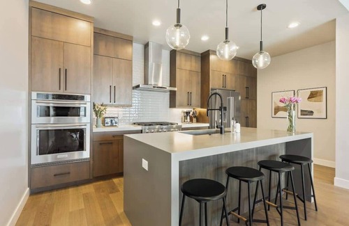 Immerse yourself in the breathtaking views of Deer Valley Resort, the Wasatch Mountains and Jordanelle Reservoir. This immaculate new townhome, both shoe-free and pet-free, features unobstructed lake and mountain views from every living space, bedroom, and patio. Furnished with modern and designer touches, we offer Brooklinen bedding, Smart TVs, and complimentary Public Goods toiletries. With a whole-home humidifier and two washer/dryer combo units, our house is outfitted with the comfort of groups and families in mind.