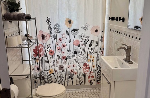 Our home was once a one room schoolhouse. We have complemented the beautiful historic features, such as hardwood floors, with modern comforts.
