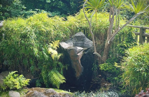 Private entrance, patio, and outdoor BBQ area, with seating overlooking a peaceful Japanese garden