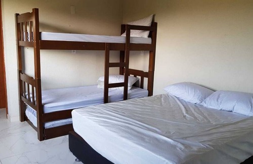 A very charming house in harmony with the coastal landscape that accommodates up to 21 people and is prepared to provide unforgettable moments for you, your family and your friends. The house has 3 (three) comfortable and large suites, one with open view to the sea, and another to the local native vegetation, both with double bed and a triliche that sleeps up to 5 people per suite, ideal for couples with children. the 40 m2 presidential suite, with contemporary design, walk in closet and queen size bed, with delightful solar heating bath like the other suites, ideal for honeymooners. To accommodate singles and singles we have available an external room with 9 beds in triliche, with two collective bathrooms in the gourmet space.