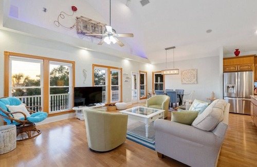 Step outside onto the wrap around deck where you will find plenty of seating to sit back and enjoy your time here on the island.