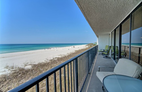 NOTICE: Ongoing Exterior Construction Improvements, May be disruptive and loud. Beautifully decorated gulf front condo located on the Gulf of Mexico! Every room has an unobstructed view with a huge balcony. This lovely Seachase condominium boasts 1,400 square feet of living space with 2 gulf front master suites, one on each end of the unit. Each bedroom has its own full bathroom and spacious walk-in closet with a king bed in one bedroom and 2 queen beds in the 2nd bedroom. The living room features a pull out sofa for additional guests. The generous sized, gulf front living/dining area and kitchen are located in the center of the unit.