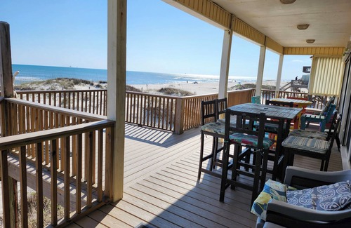 plenty of 'people' room, with a spacious open living/kitchen/dining area. A nice covered deck has breath-taking views of the ocean, right at your back door. Watch the dolphins, shrimp boats, birds, and flying fish! Perfect for watching your children build sand castles, while you take a sun-break on the covered porch.