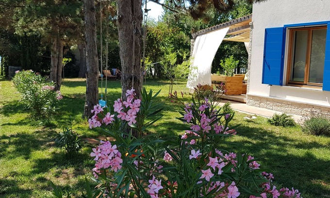Escape to our vacation house, Villa Enjoy, nestled just 30 meters from the pristine shores of a tranquil bay. Here, serenity awaits amidst the gentle lull of the sea and the rustling of pine trees. Unwind in this family-friendly haven boasting three cozy bedrooms, ensuring ample space for you and your loved ones. Step outside onto the terrace, where you can relax and connect with nature. Beneath the shade of a majestic tree, find respite from the sun's rays and immerse yourself in the lush surroundings of the verdant garden, complete with Mediterranean vegetation.