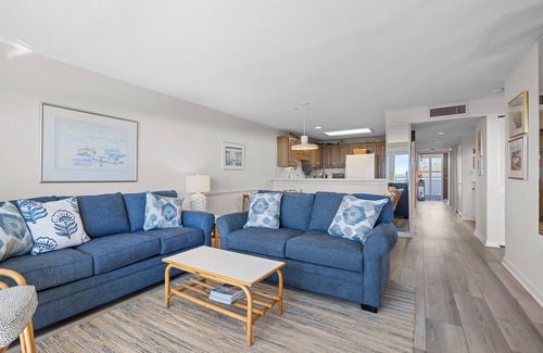 Be the first to stay at this new to the market vacation rental! Use coupon code newtomarket for 10% off. Seaworthy is an oceanfront, 3 Br/3 Ba, BeachWalk condo, right on the pristine, quiet, uncrowded beach of Pine Knoll Shores. Enjoy amazing panoramic ocean views from the huge private balcony. This spacious condo also has views from the living room, kitchen, and primary bedroom. BeachWalk amenities include a community pool, (seasonal), with plenty of retractable lounge chairs to enjoy the sun, an elevator for easy access to the upper floors, luggage carts, shopping carts, free parking for 2 cars, and easy access to the beach and ocean for all BeachWalk guests. The primary bedroom has two full size beds and a full bath along with access to the expansive oceanfront balcony. The second bedroom has a queen bed and a full bath while the third bedroom has two twin beds and shares a full bath with hallway access. This condo has been lovingly maintained and features everything that you need for a fabulous Crystal Coast getaway! It's sure to become a family tradition.