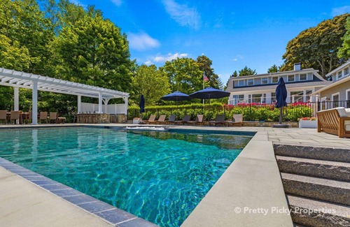 This Orleans Estate is located in the heart of Orleans Village on picturesque Town Cove. Bring the whole family and leave the cars in the driveway for the week. You'll spend countless hours around the pool and spa at the Main House. There's plenty of room for everyone to gather around the fire pit and cook out poolside at the outdoor kitchen. You can walk to everything in Orleans Center, including some of the best restaurants in town, village shops and of course, ice cream. There are four ice cream shops within walking distance!