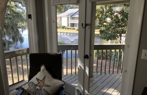 Enjoy our peaceful, private villa tucked away in one of the most secluded areas of St. Andrews Commons at the prestigious Palmetto Dunes Resort. The view from our 2nd floor villa is gorgeous. Enjoy our full view of the lagoon and fountain along hole #15 of the George Fazio Golf Course. The sun sparkles off the water as you watch the golfers on the fairway. Enjoy the panoramic view from our second floor balcony or the pool, only a few steps away. Palmetto Dunes Resort offers three eighteen hole championship golf courses (Robert Trent Jones, Arthur Hills and George Fazio), twenty five tennis courts, sixteen pickle ball courts with lights for night time enjoyment as well as five miles of scenic bicycle paths. You can explore the eleven miles of saltwater lagoon while kayaking or fishing. Last but not least, the three miles of pristine beach front. Our villa is located 3/4 mile from the beach. You can drive, bike, walk or take the seasonal Dunes Buggy to the beach front. The 2 main beach entrances are the Disney House and The Dunes house. Each one has free onsite parking next to the beach front, as well as onsite food, beverages and bathroom facilities. The Dunes Buggy offers free shuttle service April 1st through September 7th and the hours of operation are 8 am to 9 pm daily. The shuttle will take you anywhere on the Palmetto Dunes Resort which includes Shelter Cove.