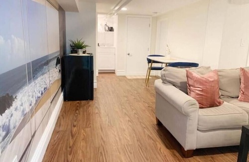 This new Basement Studio is the perfect size for 1. The apartment has it's own separate entrance. It offers a living & dining area, bathroom & kitchenette, all private. Plus a comfy Queen size bed with Memory foam mattress.