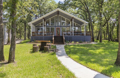 Beautiful Lake house at Cedar Creek lake, just one hour from downtown Dallas. This newly remodeled home is nestled in the trees at the end of a quiet cove. There is a large concrete firepit with seating overlooking scenic views of the lake. The covered boathouse is perfect for fishing off the pier and swimming! There are 2 jet ski lifts and room for a a 20' boat. 2 Kayaks and a large Lily pad are also provided for use during your stay. Brand new ping pong table in garage.